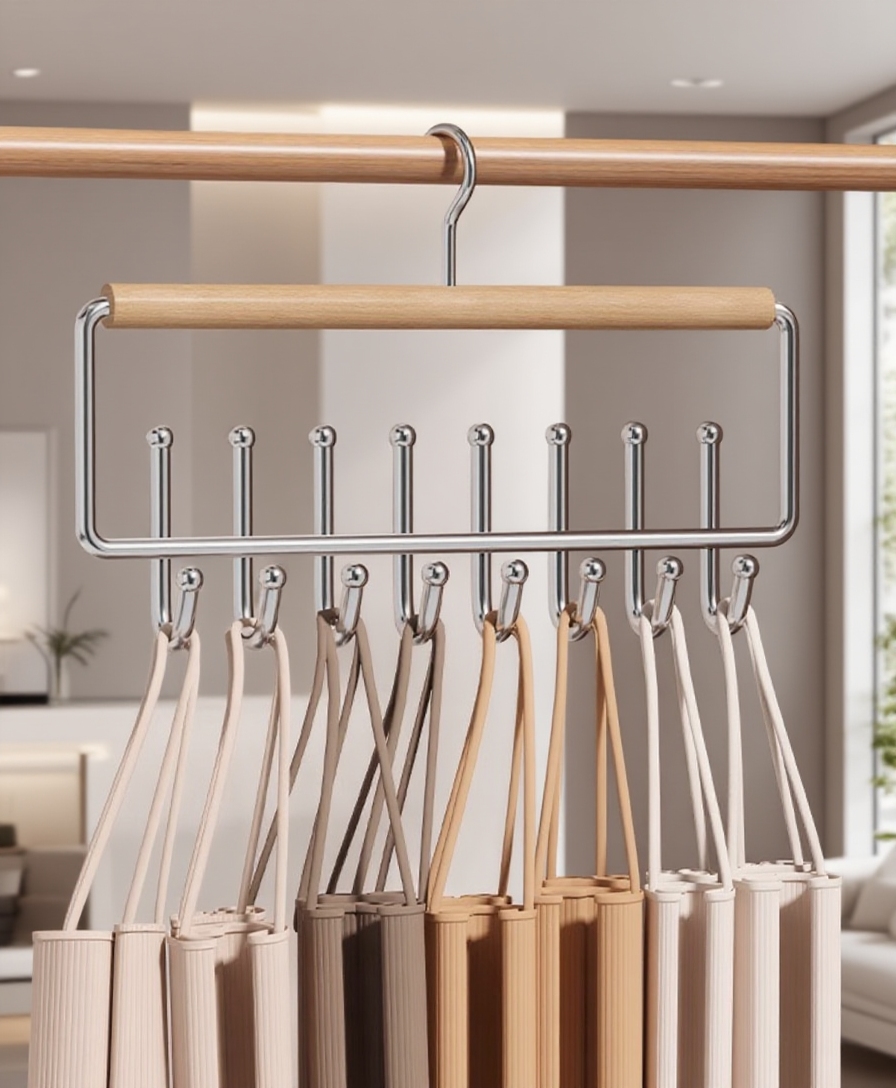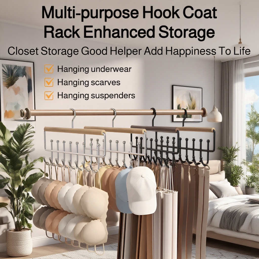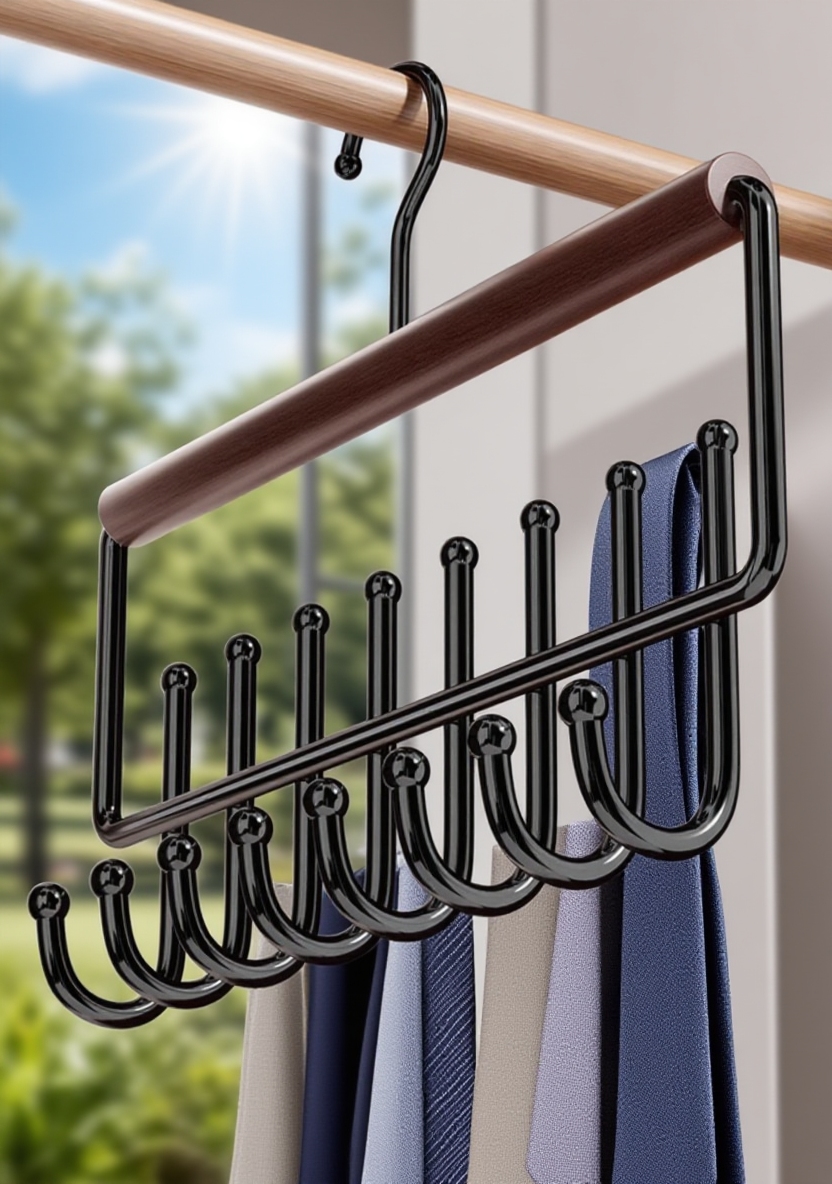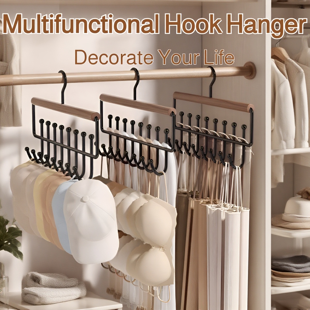 Solid wood construction, 16 hooks for maximum storage, space-saving design, suitable for various clothing items, durable and easy to install, ideal for organized closets.