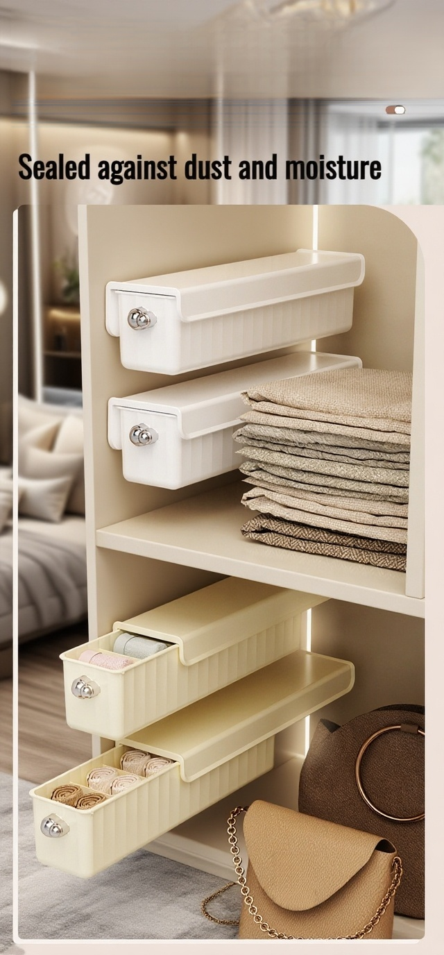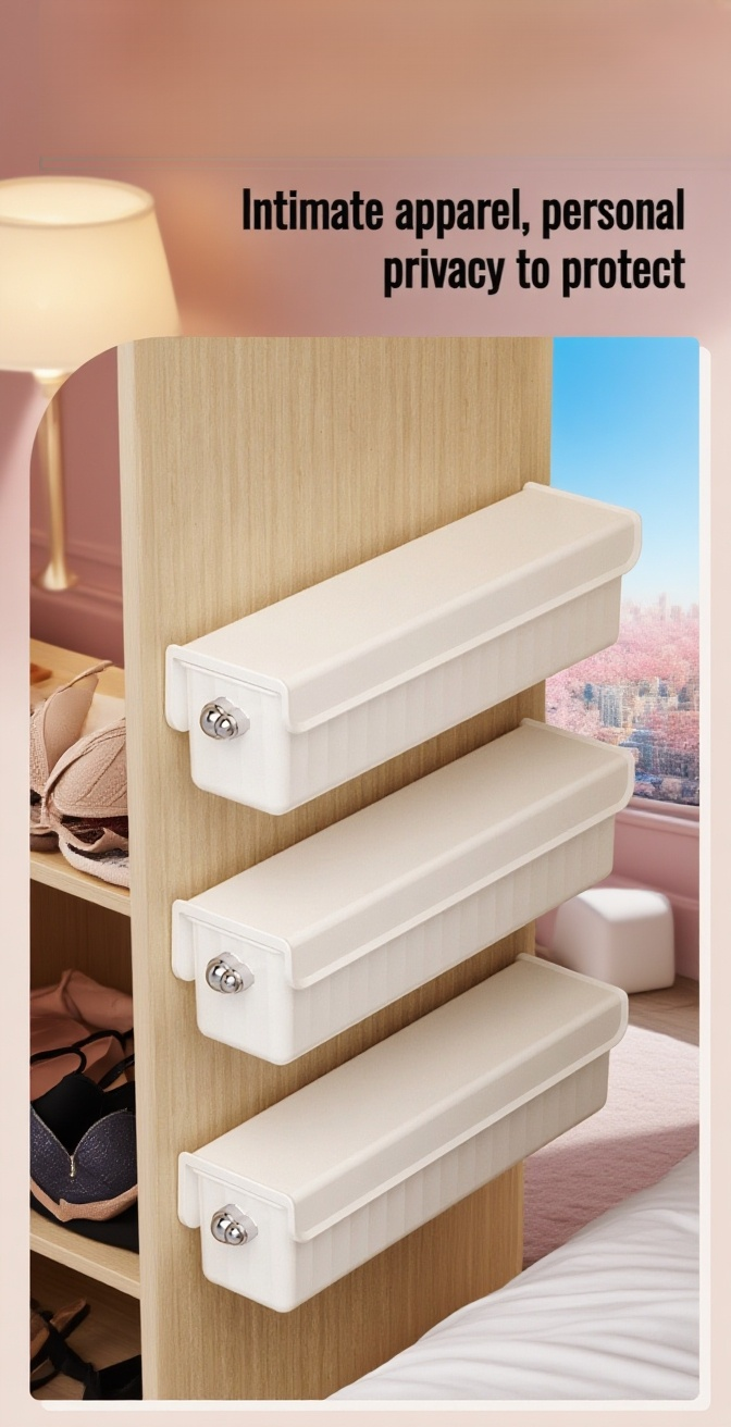 Space-saving wall-mounted underwear storage box, easy installation, dustproof design, clear compartments for organized access, durable material, ideal for bedrooms and bathrooms.