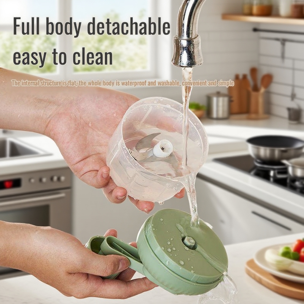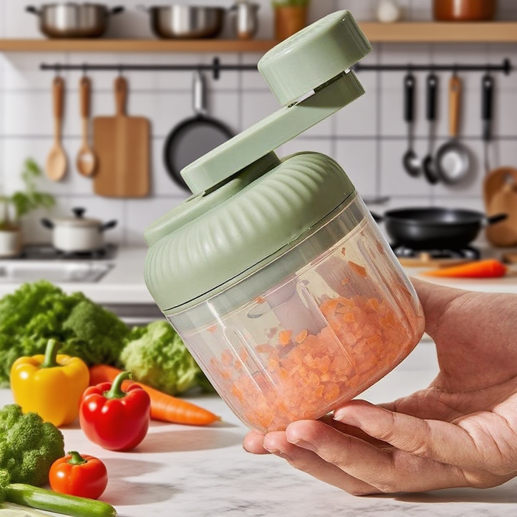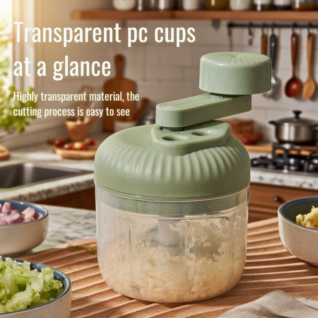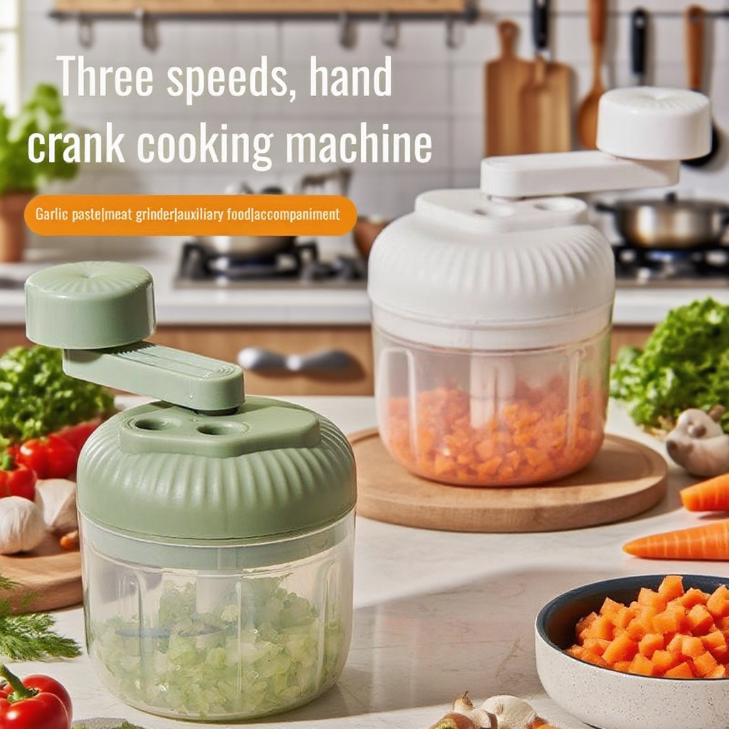 Efficiently chops, slices, and mixes various ingredients. Compact design saves kitchen space. Easy to clean and operate. Suitable for vegetables, fruits, and nuts. Durable manual mechanism.